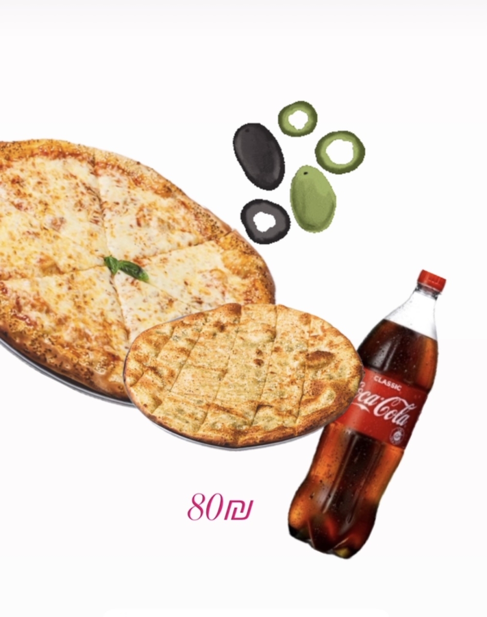 פיצה L+תוספת אחת+לחם שום משפחתי+שתייה ליטר וחצי