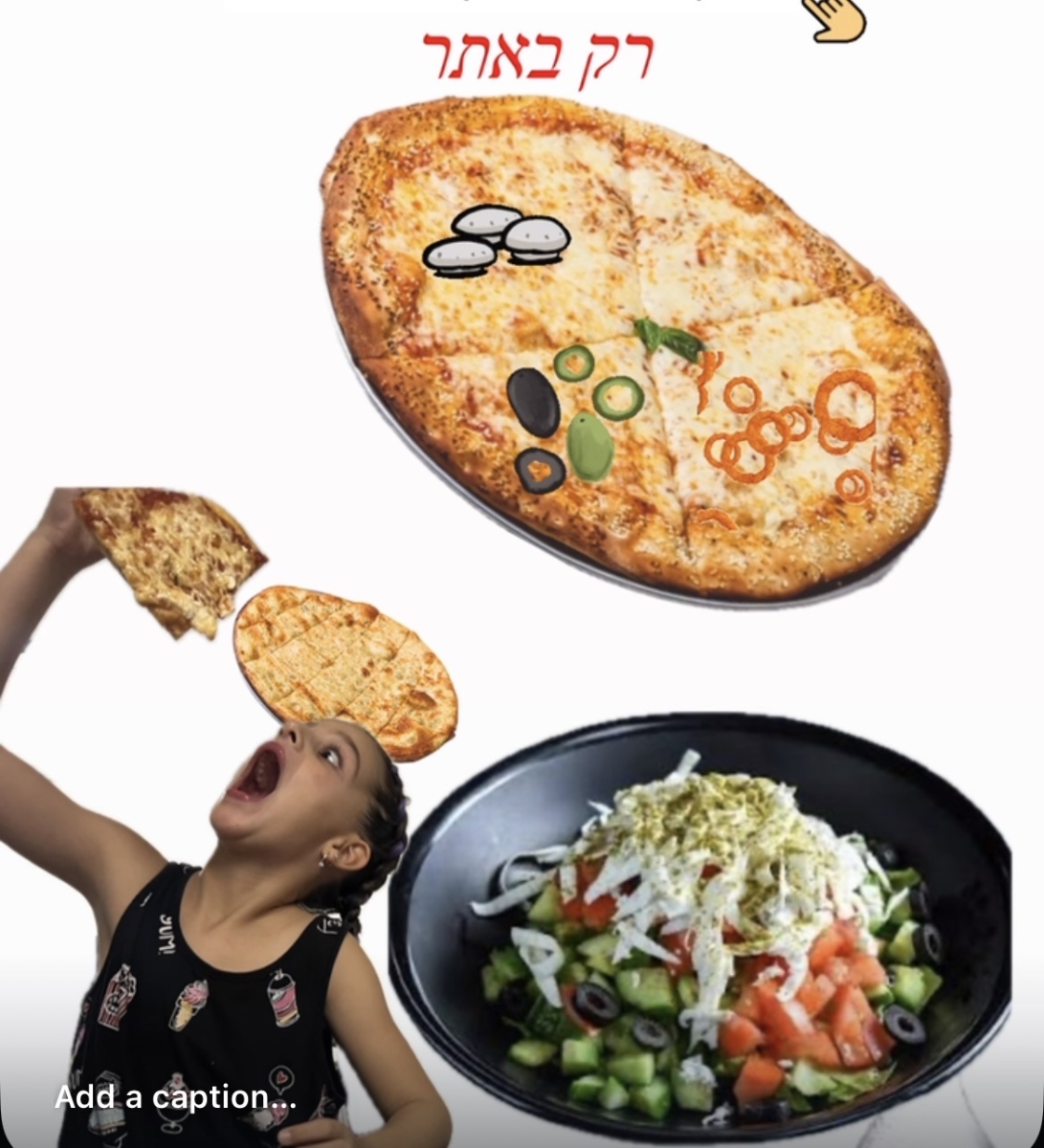 פיצה L+תוספת לבחירה+סלט לבחירה ולחם שום אישי